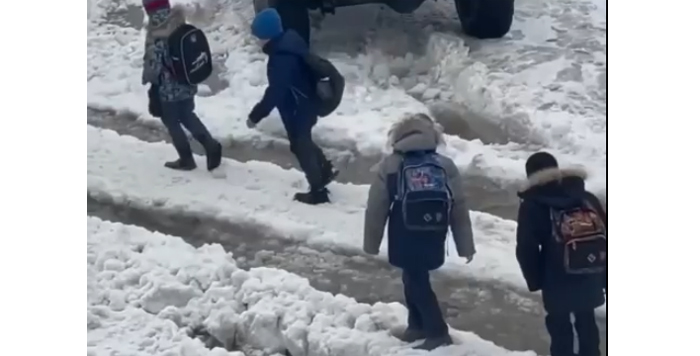 Школьники в Симе (Ашинский район) добираются домой по лужам и сугробам – видео, где нет ни сантиметра сухого асфальта, выложил в своем телеграм-канале челябинский губернатор.