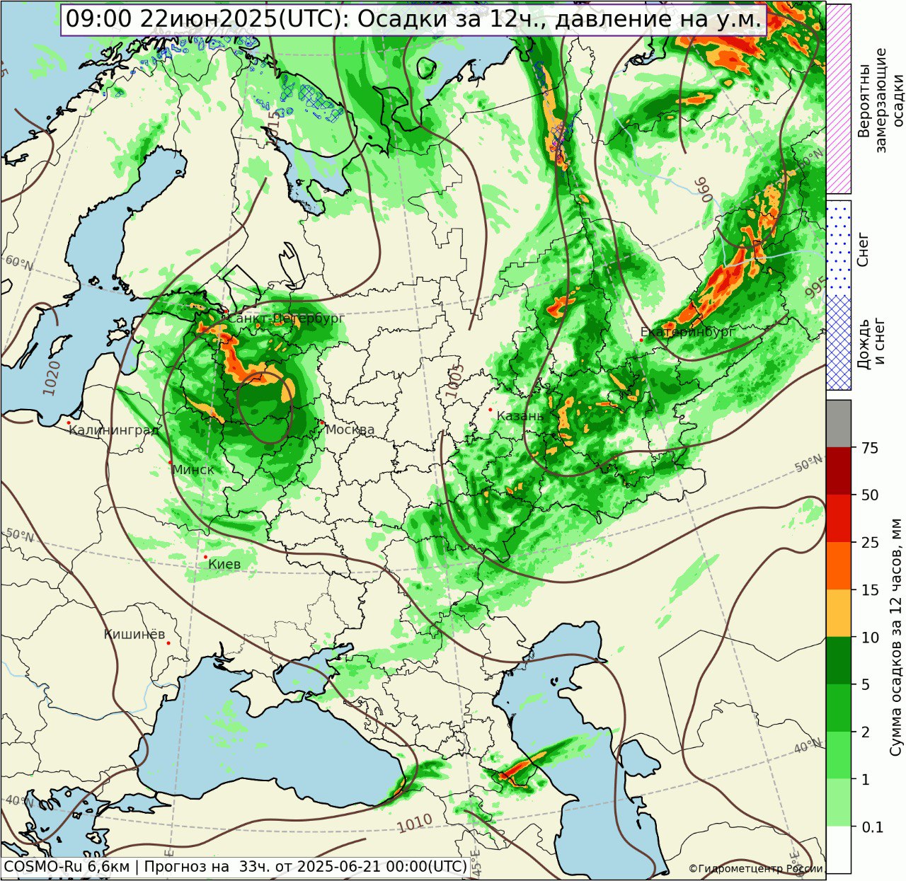 В воскресенье, 22 июня, в циклон войдет арктический фронт, уже оформляющийся на севере Европейской территории России. Следом, 23-24 июня, поступит холодный северный воздух, температура понизится на 3-5 градусов. Ожидается прекращение осадков, прояснение в облачности и довольно холодные ночи.