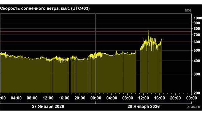 «Резких ударов не было (скорость растет довольно плавно), поэтому геомагнитные индексы пока держатся в зеленой зоне, но в ближайшее время почти наверняка пожелтеют. Вероятны слабые бури», – говорится в комментарии Лаборатории солнечной астрономии Института космических исследований (ИКИ) РАН.
