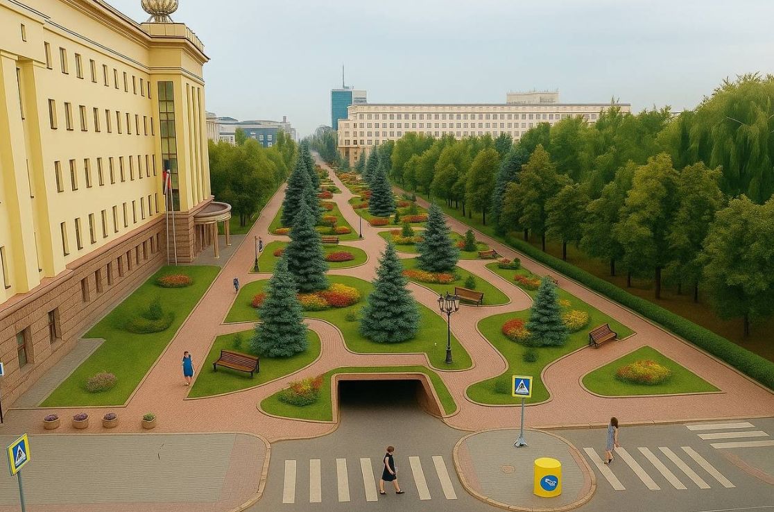 Сергей Буяков попросил нейросеть «благоустроить» пространства, где сейчас расположены стоянки машин. Это площади перед Драмтеатром и напротив Челябинвестбанка.