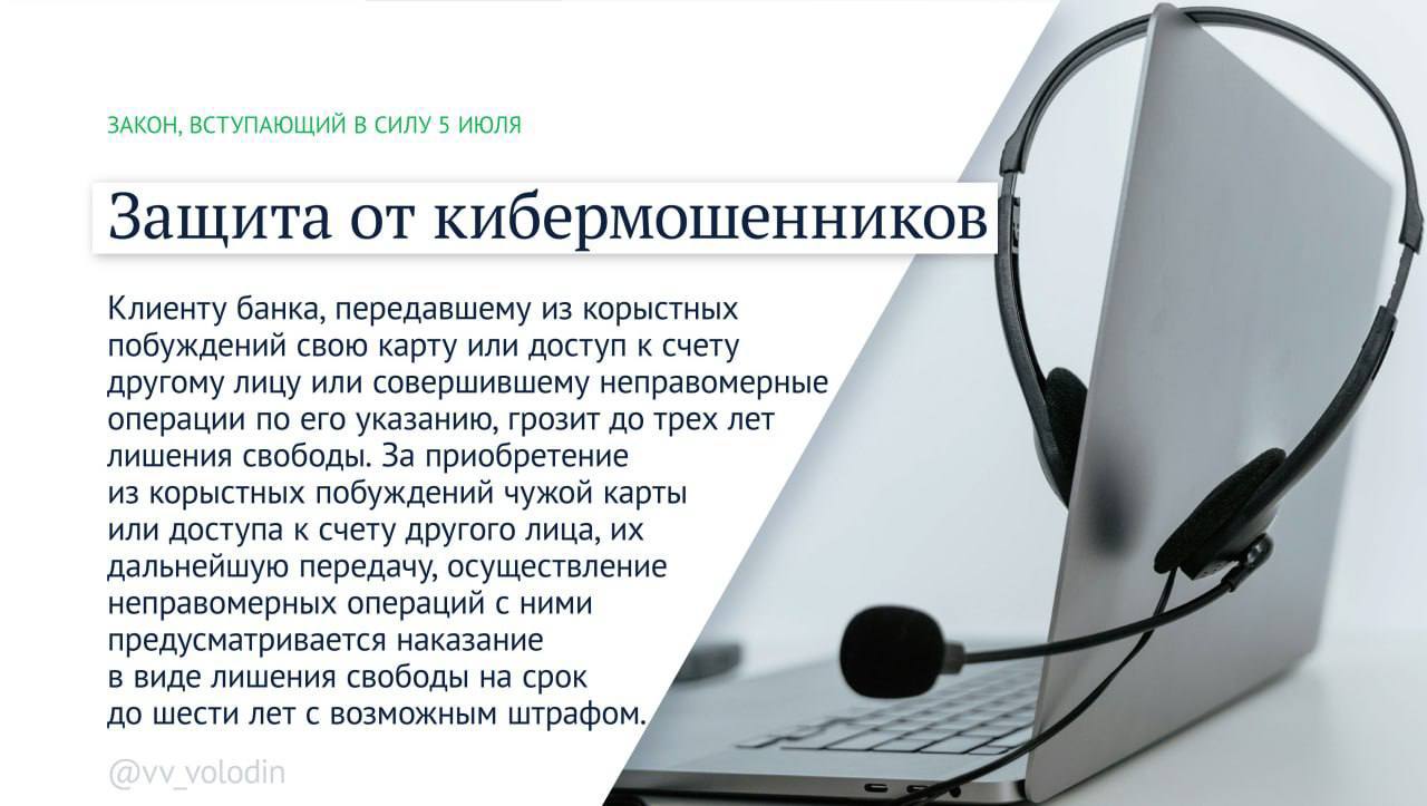 «Тем, кто приобретает чужие банковские карты, использует их для вывода денежных средств, полученных обманным путем, грозит до шести лет лишения свободы», – написал он в частном Telegram-канале.