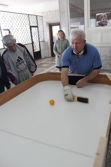 Специальный теннисный стол отличается от общепринятых высоким бортиком, который не дает мячику выскакивать за пределы игрового поля. Кстати, даже сам теннисный шарик здесь особый. При передвижении по полю он звучит, чтобы слабовидящие люди могли попасть по нему деревянной ракеткой.