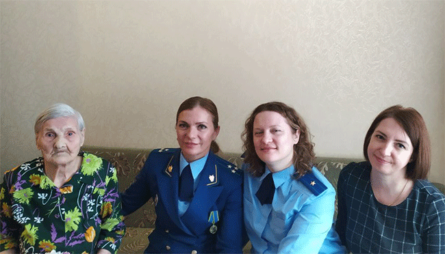 Марию Яковлевну Ермолаеву поздравили работники прокуратуры Калининского района.