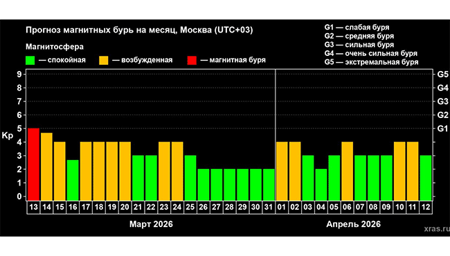 В пятницу, 13 марта, стартует длительная серия геомагнитных возмущений, передает корреспондент Агентства новостей «Доступ».