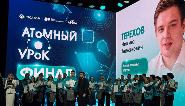 «Педагог победил в номинации "80-летие атомной промышленности. Гордость. Вдохновение. Мечта", разработанной специально для младших школьников (1-4 классы). Участникам пришлось пройти два этапа: провести собственный "атомный урок" и организовать мастер-класс в павильоне "Атом" на территории ВДНХ, где собрались педагоги, эксперты и детское жюри», – рассказали в Минобрнауки.