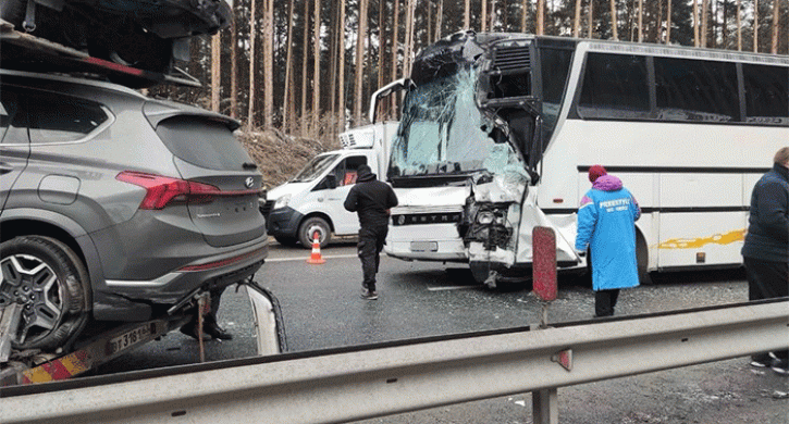 Там столкнулись автобус, который перевозил детей из города Челябинска на горнолыжный курорт, и МАЗ с полуприцепом (автовоз).