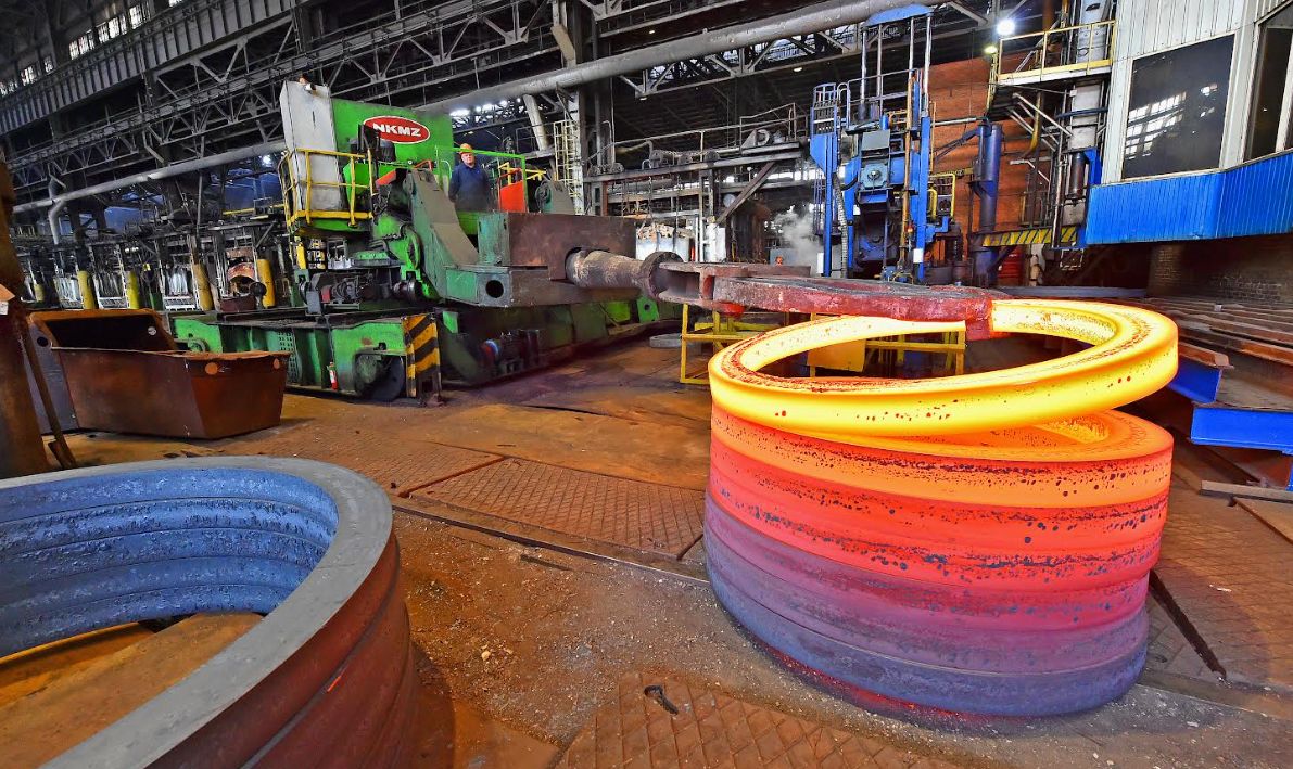 Экскурсия началась с посещения кузнечно-прессового цеха, где школьники смогли понаблюдать за тем, как происходит ковка деталей на 16- и 25-тонных молотах, а также на бесшаботном молоте. Металлурги показали ребятам работу кольцераскатной машины и подробно рассказали о тонкостях профессий кузнеца и термиста.