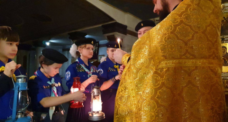 «Этот огонь был зажжен в Вифлееме. Оттуда во все уголки мира его по традиции разносят скаутские отряды. Так и в Россию частица Вифлеемского огня была доставлена в Москву на Крутицкое подворье, а затем и в Екатеринбург, где в Храме-Памятнике на Крови мы его уже и получили. Огонь был передан представителями различных скаутских отрядов со всего Уральского федерального округа», – рассказал руководитель и духовник Челябинского отделения Братства православных следопытов священник Дионисий Кадомцев.