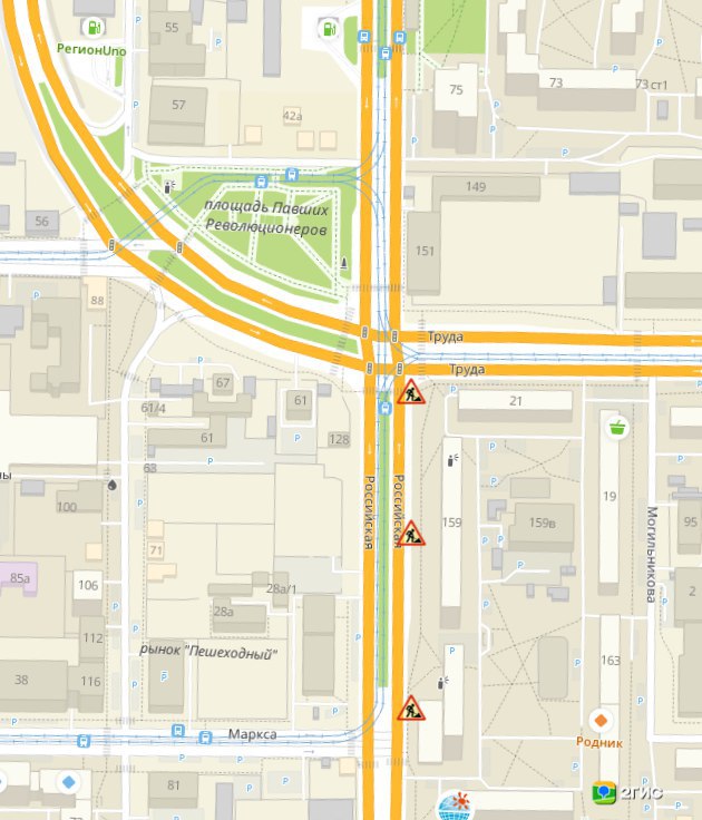 Проезд будет затруднен на участке от дома 161 по улице Российская до дома 21 по улице Труда при движении к проспекту Победы.