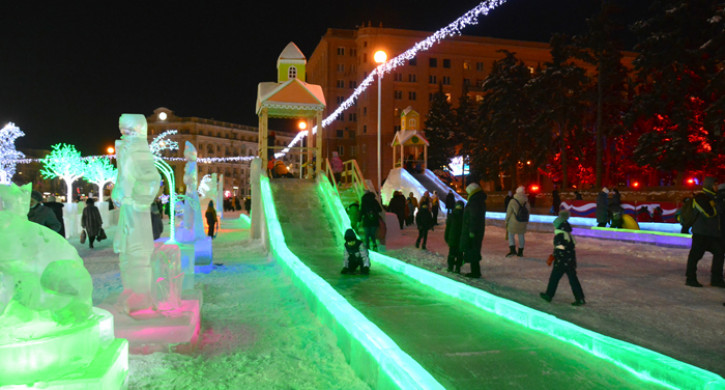 Напомним, ледовый городок был полностью готов к 25 декабря, а 27 прошло его официальное открытие. Помимо ледяных фигур сказочных персонажей, в городке работали две больших, две средних и малая горка, работали киоски и катание на животных.