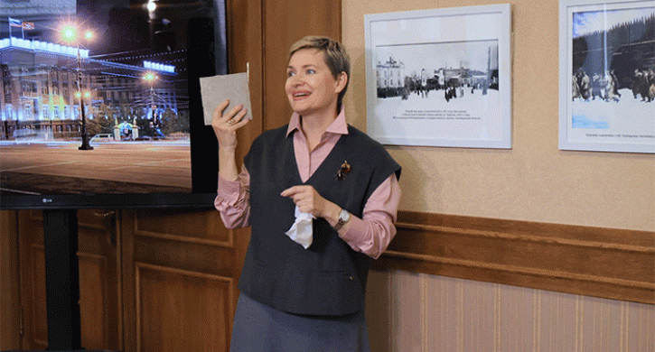 Презентацию выставки «Одно здание в зеркале разных эпох» и увлекательный экскурс в историю провела начальник управления информационной политики ЗСО Ольга Лихачева.