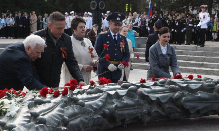 По окончании церемонии открытия Вахты памяти ее участники возложили цветы к Вечному огню. Их несли как первоклассники, так и ветераны, а также учащиеся школ и техникумов, представители общественных организаций и органов власти.