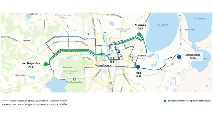 Так, в Челябинске появится новый маршрут №8 «Мамина – Академика Королева», перевозка будет осуществляться автобусами большого класса с интервалами 8 и 12 минут.