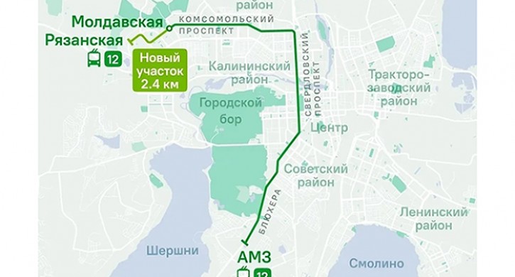 Протяженность нового участка от Молдавской по Комсомольскому проспекту, Чичерина и Салавата Юлаева составит 2,4 км.