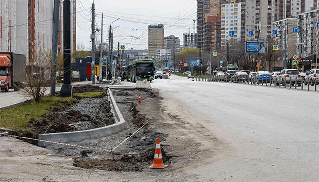 Так, на участке от улицы Чичерина до улицы Молодогвардейцев в обоих направлениях ведется замена бордюров, формируются технические тротуары, начался капремонт и модернизация сетей ливневой канализации, подъем колодцев.