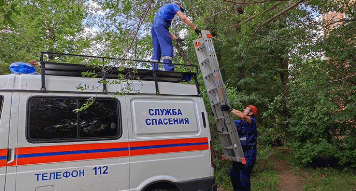 В Челябинске спасатели помогли снять с дерева перепуганного котенка