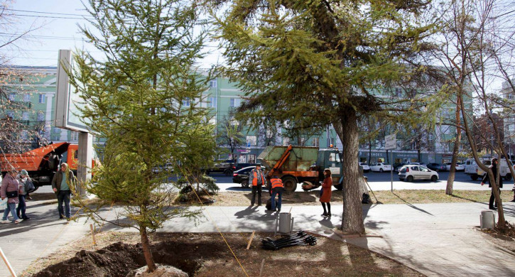 Напомним, в конце мая 2021 года именно на этом месте срубили историческую даурскую лиственницу – в мэрии сообщили, что снос был запланированным, так как дерево погибло. После поднявшегося скандала было возбуждено уголовное дело, два чиновника уволены, а глава города поручила высадить новые даурские лиственницы высотой около 2 метров.