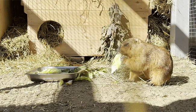 В этом году байбаки зимовали в вольере на территории Детского контактного зоопарка. Как только снег растает и земля прогреется, Булгур и Чечевица вернутся в свой вольера, «где можно ковыряться в грунте, делать норы, валяться на солнышке и вести невероятно интересую жизнь».