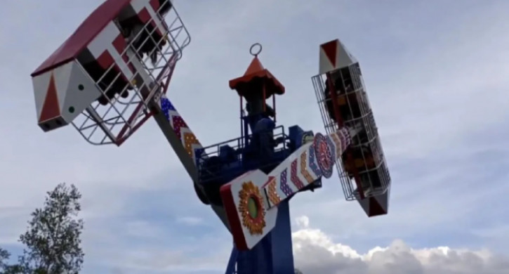 Как сообщают местные СМИ, инцидент произошел в одном из парков развлечений. По словам очевидцев, механизм заклинило на полном ходу.