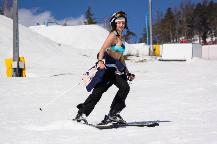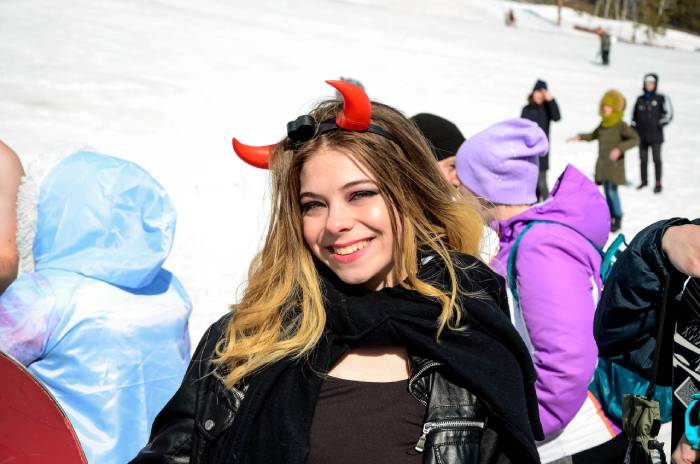 Для всех, кто решится проехать по склонам горы Известная в купальнике или карнавальном костюме, катание будет бесплатным с 12.00 до 17.00.