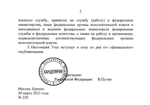 Весной 2023 года на срочную службу в России призовут 147 тыс. человек, передает корреспондент Агентства новостей «Доступ» со ссылкой на указ президента РФ Владимира Путина, опубликованный на портале правовой информации.