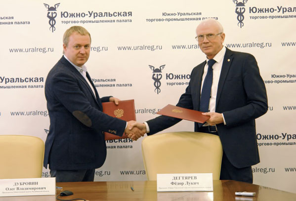 Общественная палата Челябинской области и Южно-Уральская торгово-промышленная палата (ЮУТПП) подписали соглашение о сотрудничестве – в церемонии приняли участие руководители организаций Олег Дубровин и Федор Дегтярев, передает корреспондент Агентства новостей «Доступ».