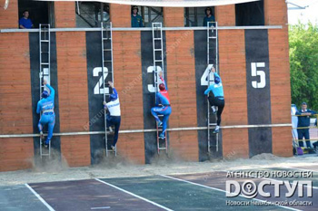Пожарные Урала и Поволжья «зажгли» на стадионе «Метар». В программе зональных соревнований по пожарно-прикладному спорту были забеги по штурмовой лестнице, эстафета и преодоление стометровой полосы препятствий (ее особенность в том, что через 23 метра после старта спортсмен преодолевает 2-метровый забор, подхватывает 2 пожарных рукава весом 5 кг каждый, пробегает по бревну, после чего присоединяет один рукав к разветвлению, стоящему на беговой дорожке, а другой – к стволу, находящемуся за спиной с момента старта, и лишь затем пересекает финишный створ).