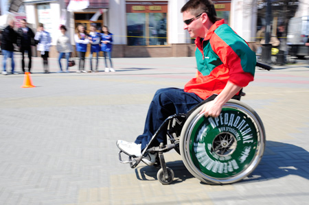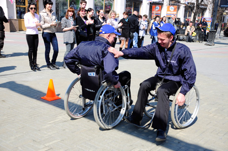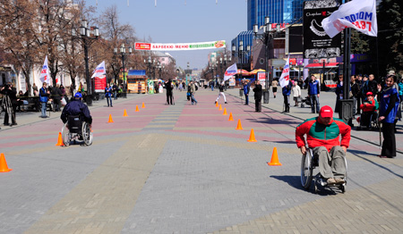 Кроме того, в этот день прошли гонки на инвалидных креслах – здоровые спортсмены должны были преодолеть «полосу препятствий», с которой каждыый день сталкиваются инвалиды в городской среде.