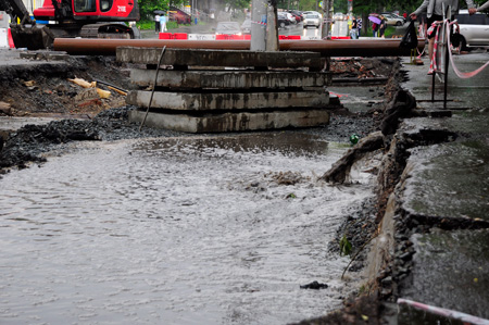 Еще одна проблема дорог, которую выявили обильные осадки, – плохая организация ливневок, из-за чего некоторые участки магистралей оказываются полностью под водой. По словам Владимира Алейникова, такие недочеты стараются оперативно устранять. Туда, где нет ливневой канализации, выезжают специальные машины для откачивания воды. Однако затопленными могут оказаться и оборудованные дождевыми стоками магистрали – там, где на дорогах практически нулевой уклон. «В таких местах вода уходит, но медленно – это становится заметно только по прошествии какого-то времени», – отметил Алейников, добавив, что также дождеприемники забиваются мусором, в том числе скошенной травой, однако невозможно на каждую ливневку поставить человека, который будет постоянно контролировать ее состояние.