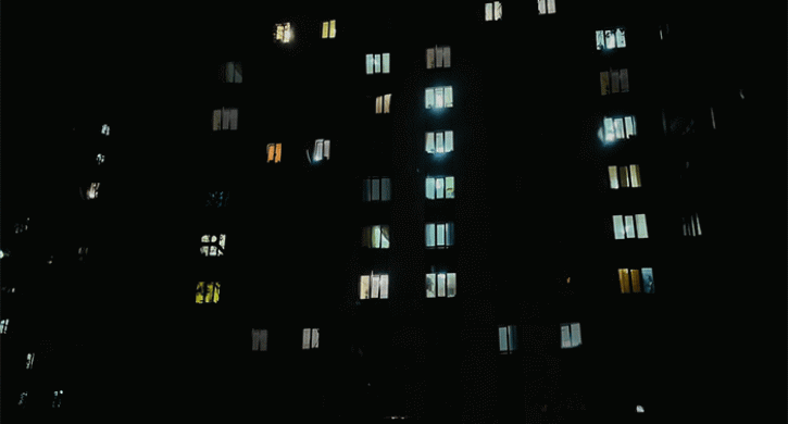 Окна зажглись, образовав огромные цифры, в честь 80-летия Победы.