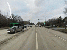 В Челябинске автомобиль после ДТП влетел в электроопору и едва не сбил людей