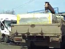 В центре Челябинске из грузовика с полуприцепом выпали колеса для вагонов