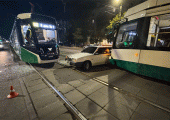 В Челябинске трамвай прижал иномарку к столбу, пострадали два человека
