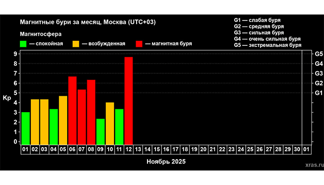 Ученые назвали 7 ноября самым сложным геомагнитным днем 2025 года