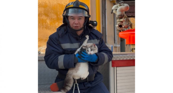 В Челябинске спасатели сняли кошку с карниза девятого этажа