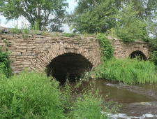 Мост сложен из тесаного плитняка и бута с металлическими связями.