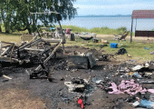 На озере в Челябинской области сгорела самодельная кухня на колесах