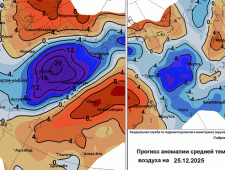 А далее, 24-25 декабря при небольшом снеге вместе с вторжением арктического воздуха начнется значительное похолодание.