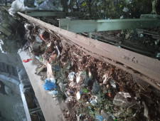 Крупная ветка попала на стол в составе смешанных коммунальных отходов, застопорила движение конвейерной линии и порвала ленту.