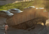 В Миассе под большегрузом рухнул асфальт