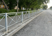 На проспекте Победы в Челябинске устанавливают оцинкованные ограждения и пандусы