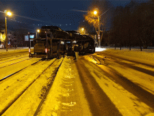 В Челябинске автовоз занесло на трамвайные пути, движение остановлено