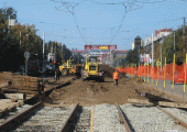 Ремонт трамвайных путей в районе Комсомольской площади затянется до конца мая
