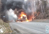 На трассе М-5 в Челябинской области сгорел грузовой автомобиль