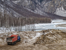 Вездеходы «Урал NEXT» участвуют в возведении 3-километровой дамбы на реке Уда.
