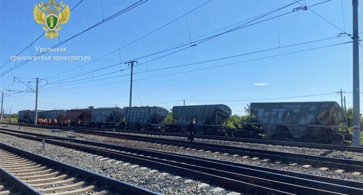«На подъездном пути "Символ" на сбрасывающей стрелке произошел сход восьми вагонов в составе грузового поезда», – прокомментировали в Уральской транспортной прокуратуре.