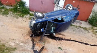 Необычная авария произошла в понедельник, 1 июля, около 16.00. По словам очевидцев, водитель Volkswagen Passat ехал на высокой скорости в районе местной телевышки. По предварительным данным, иномарку занесло на крутом повороте: машина ушла в кювет, перелетела через крыши расположенных в низине гаражей и перевернулась.