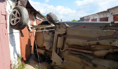 В Златоусте (Челябинская область) иномарка перелетела через гаражи – автомобиль двигался по воздуху несколько секунд, а затем врезался в один из боксов кооператива, передает корреспондент Агентства новостей «Доступ» со ссылкой на очевидцев.